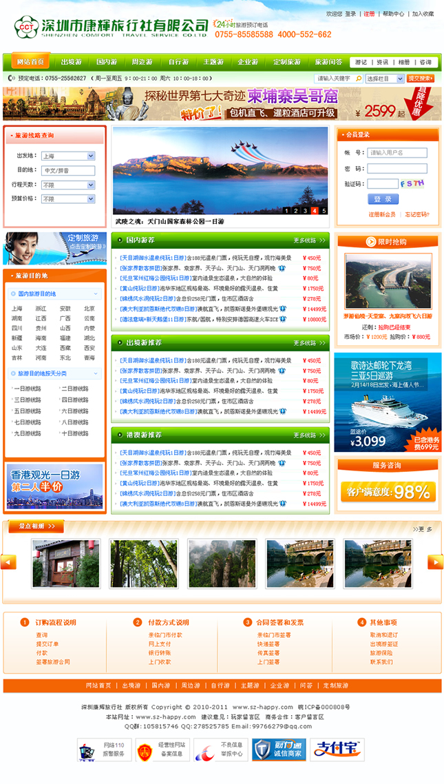 中國(guó)康輝旅行社有限責(zé)任公司以“網(wǎng)絡(luò)化”、“規(guī)模化”、“品牌化”為發(fā)展目標(biāo),致力于“國(guó)內(nèi)成網(wǎng)、國(guó)外成鏈”的建設(shè)。日臻完善的全國(guó)網(wǎng)絡(luò)和垂直管理模式形成康輝集團(tuán)在全國(guó)旅行社行業(yè)獨(dú)特的優(yōu)勢(shì),遍布全國(guó)及海外的網(wǎng)絡(luò)及2300余名優(yōu)秀員工真誠(chéng)為海內(nèi)外旅游者提供全方位的優(yōu)質(zhì)服務(wù)。北起哈爾濱,南至深圳、海南,東起上海,西至甘肅、新疆, “中國(guó)康輝”在全國(guó)各大城市設(shè)有70多家垂直管理的分公司(分社),其中1999及2000年度就有8個(gè)分社進(jìn)入全國(guó)國(guó)際旅行社百?gòu)?qiáng)行列。2001及2002年,“中國(guó)康輝”在國(guó)家旅游局 “全國(guó)國(guó)際旅行社百?gòu)?qiáng)企業(yè)”的業(yè)績(jī)排名已列三甲,企業(yè)實(shí)力不斷發(fā)展壯大!