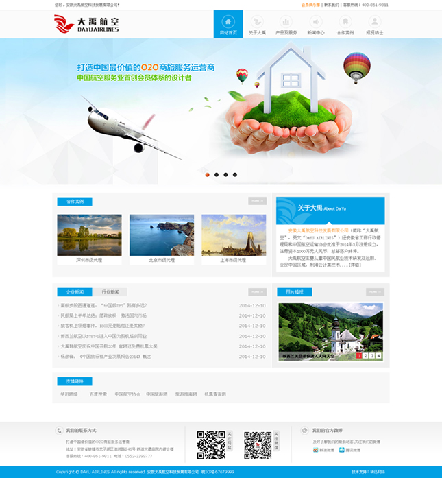 大禹航空主要從事中國民航業(yè)技術(shù)研發(fā)及運用,立足中國區(qū)域,利用云計算技術(shù)緊密結(jié)合民航業(yè)、旅游業(yè)、酒店業(yè)的商務(wù)著眼點,以航空服務(wù)及入侵航空銷售與政策渠道,通過核心人力專業(yè)合作且互補資源,建立了具有O2O運營模式的一站式航旅服務(wù)智能化平臺(DayuAir.com),并配套了專業(yè)的“中國民航呼叫中心創(chuàng)新基地”和“空鐵聯(lián)運服務(wù)中心”為平臺提供線上線下的支持與保障。